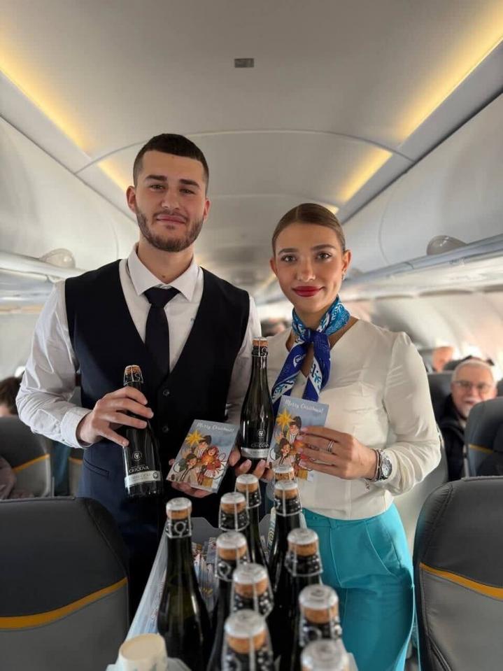 La bordul aeronavei, călătorii au primit în dar o sticlă de vin spumant și o felicitare de bun venit, care i-a invitat să descopere produsele locale și experiențele autentice oferite de Republica Moldova.